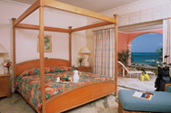 The spacious Oceanfronts are perched above the shore between Grotto and Mermaid Beaches. They sport distinctive 16-foot high wood ceilings and picture windows that frame magnificent sea views. Each room has a sitting area, and a stone patio that fronts the sea below. |