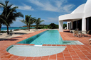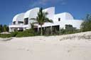 Grand Villa #5 With nearly 6,000 square feet of dramatic living space, this five-bedroom home accommodates up to ten guests. The main level features a tree-filled atrium which expands into spacious living and dining areas and a superbly equipped modern kitchen. A large ground-floor master suite includes study and private step-less entrance; the only handicap-accessable Villa on Anguilla. A dramatic curving staircase leads to two upper level wings, each having an air-conditioned master suite and guest bedroom. All bedrooms have private baths. |