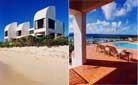 Luxurious, two bedroom hideaways strung along the beach. Living room, dining area, custom kitchen, powder room, and private verandah on the lower level at beach level. Master bedroom with king bed and bath, and guest bedroom with twin beds and bath are upstairs. Spectacular ocean views from all rooms. |
